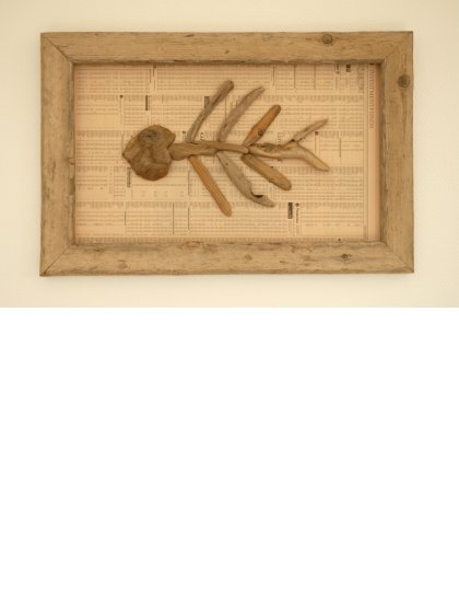 Fischgräte aus Nordsee-Treibholz arrangiert auf der