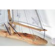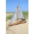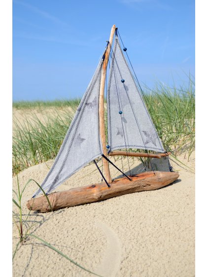 Die Segel sind aus grau-blauem Stoff in Leinenoptik mit