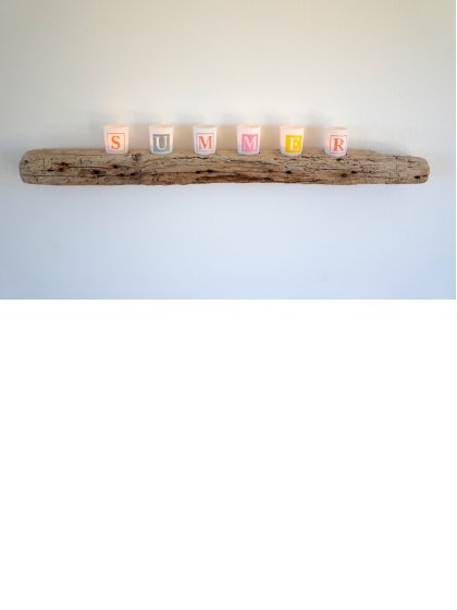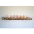 Nordsee-Treibholzbalken und satinierten Teelichtgläsern.