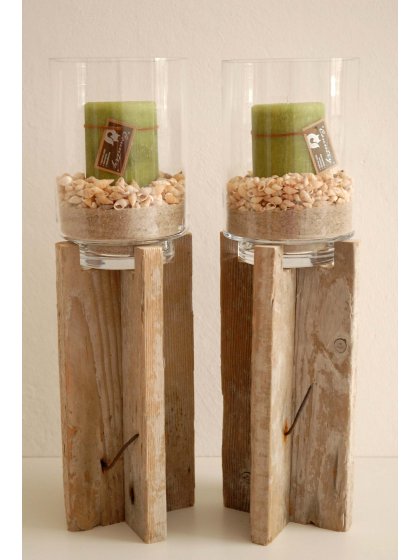 Die Sockel dieser Windlichter sind aus einem Nordsee-Treibholz