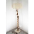bespannt. Ausgestattet mit einer E27 Fassung, einem Trittschalter