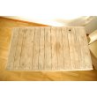 Die Tischplatte ist aus einer Palette gefertigt und die