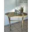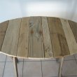 Ovale Tischplatte aus korrespondierenden Treibholzbrettern