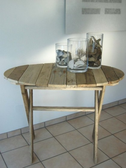 Gestell ebenfalls aus Treibholzbrettern